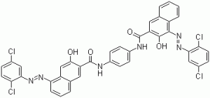 InChI: InChI = 1 / C40H24Cl4N6O4 / c41-23-9-15-31 (43) 33 (19-23) 47-49-35-27-7-3-1-5-21 (27) 17-29 ( 37 (35) 51) 39 (53) 45-25-11-13-26 (14-12-25) 46-40 (54) 30-18-22-6-2-4-8-28 (22) 36 (38 (30) 52) 50-48-34-20-24 (42) 10-16-32 (34) 44 / h1-20،51-52H، (H، 45،53) (H ، 46 ، ) 54)